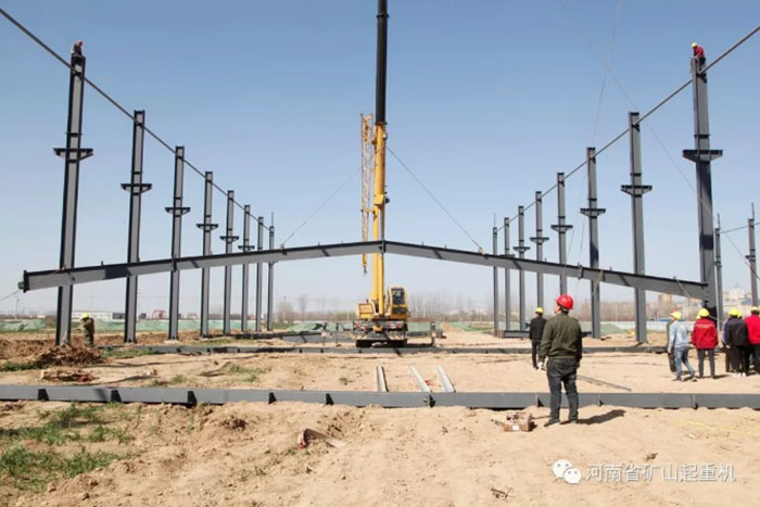 After the link of beam and the column, the operators of the steel column adjusted again to ensure that the bolt holes were aligned and then fastened with high-strength bolts. The construction process of each step was carried out smoothly and orderly. So far, the project of intelligent industrial park of Henan Mine Crane Co., Ltd. has a new milestone.