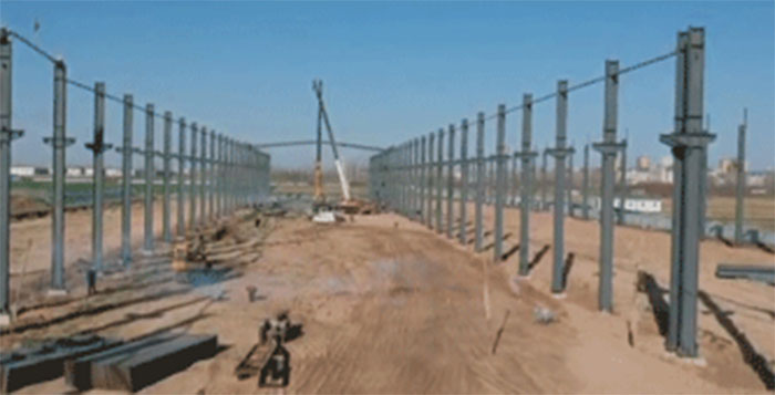 It is understood that the intelligent industrial park covers an area of about 800,000 m2. The steel structure workshop in shangliang today is the first phase project of the industrial park. The structure of the workshop is a single-storey gantry steel structure. The main body is the workshop on the ground floor, with a total height of 30 meters and a total length of more than 640 meters, therefore the construction area is 160,000 m2.